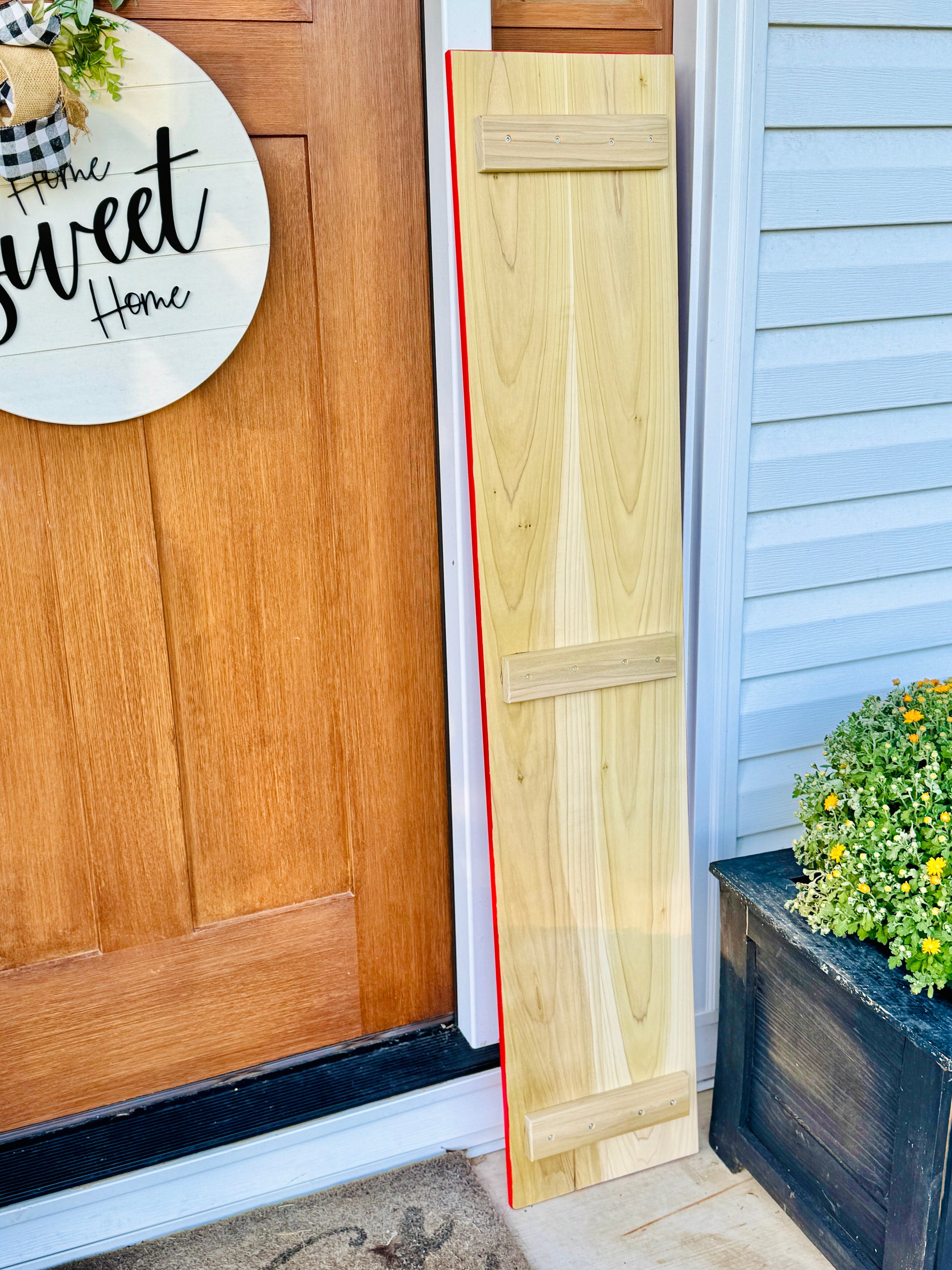 Each leaner is built from solid wood for durability and strength, with a back side brace to prevent twisting or bowing over time. To ensure long-lasting use, the wood is sealed in its raw state, helping to protect against moisture, weather, and decay so you can enjoy your porch sign season after season.