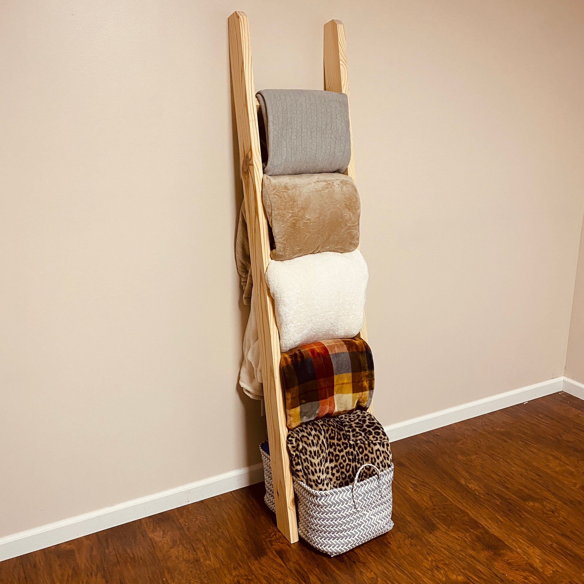 Do you have all of your comfy blankets either wadded up on the couch or, worse, just thrown on the floor? Or do you have them stowed around in a closet and don't have easy access to them when it's time to snuggle on the couch? Our blanket ladder is the perfect addition to your living room then!